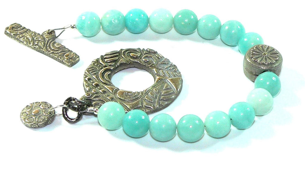 Amazonite Gemstone Bracelet with Unique Toggle Clasp, Handmade Boho Jewelry Gift
