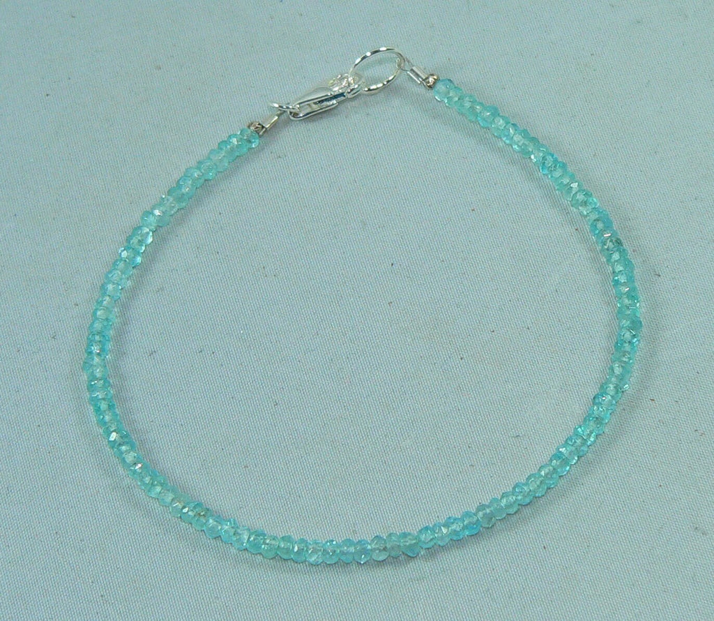 Indulge in effortless elegance with our Light Blue Apatite Minimalist Bracelet. Handcrafted with delicate 3mm light apatite rondelle beads and tiny Hill Tribe silver accents, this bracelet exudes a refined charm. The sterling silver lobster claw clasp adds a touch of sophistication, ensuring a secure fit. Embrace the calming energy of natural apatite, known for its soothing properties. This minimalist neon gemstone bracelet is a versatile accessory that effortlessly elevates any ensemble, making it perfect for women who appreciate understated beauty.
