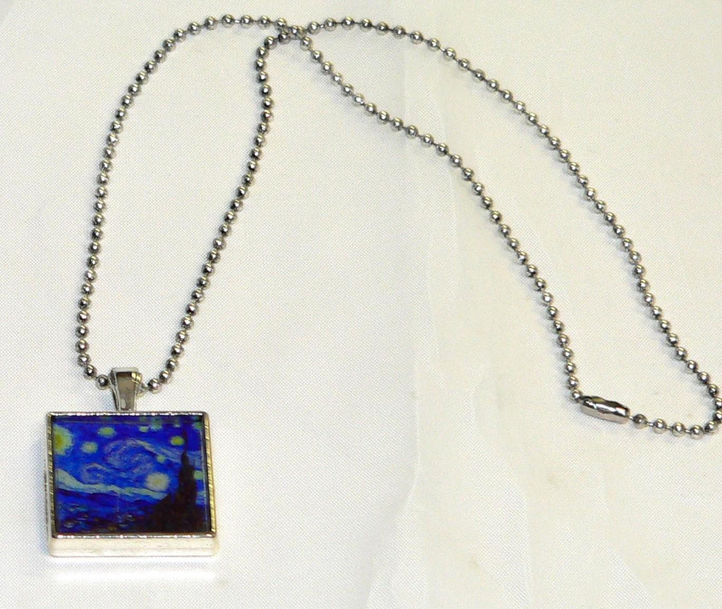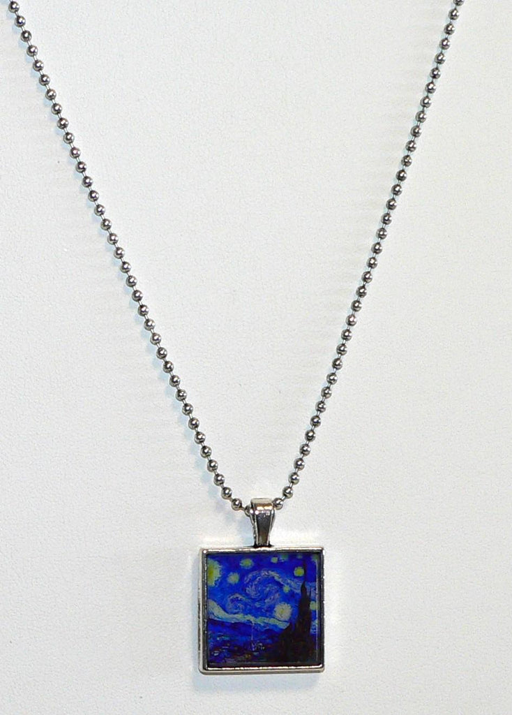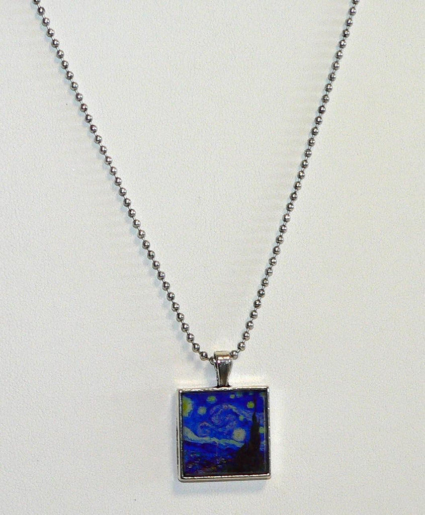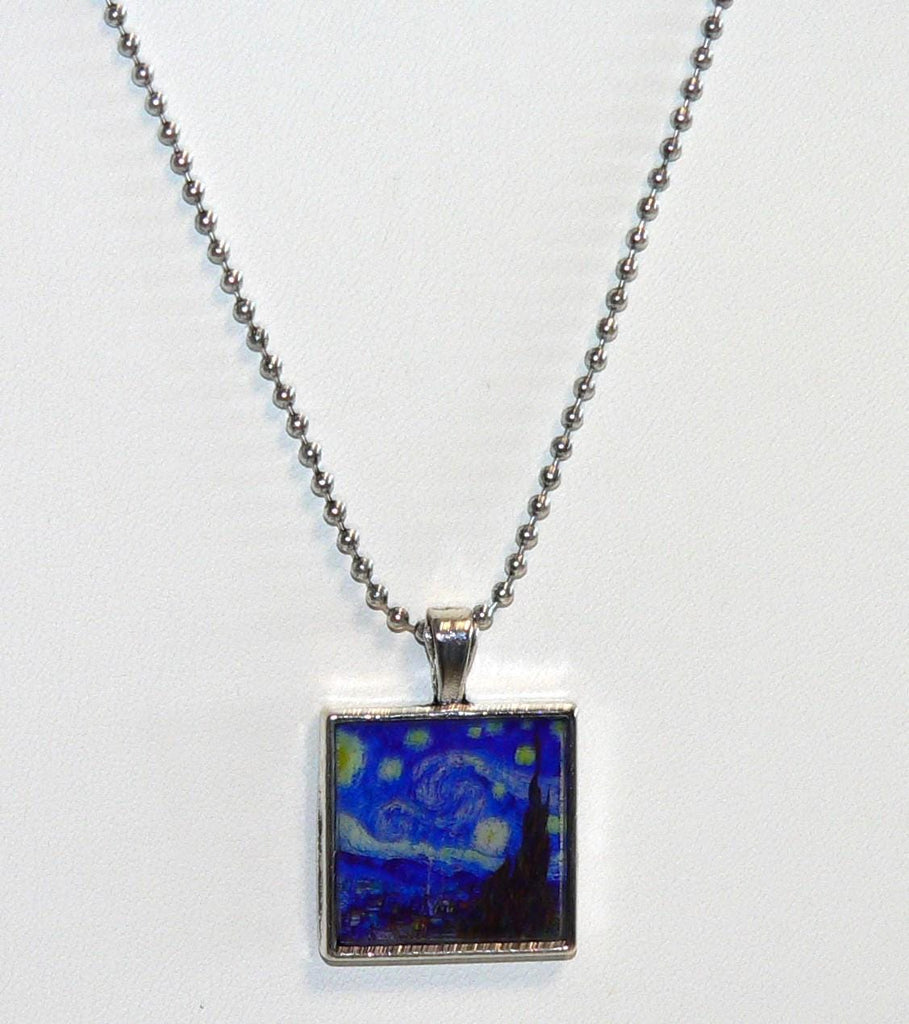 Artistic Starry Night Van Gogh Pendant Necklace for Unique Gift Ideas Van Gogh Starry Night Altered Art Necklace