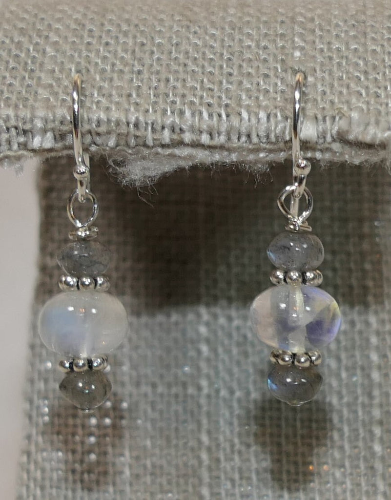 Illuminate your style with our stunning Blue Flash Moonstone Earrings, where each exquisite dangle showcases the captivating play of colors that only natural gemstones can offer. Designed to resonate with bohemian elegance, these earrings feature shimmering moonstone complemented by sparkling labradorite, making them a perfect statement piece for any occasion. Experience the enchanting glow that radiates from these gemstone drops as they catch the light, adding a touch of magic to your outfit. Don't miss out on elevating your jewelry collection—grab your pair today and let your unique style shine!