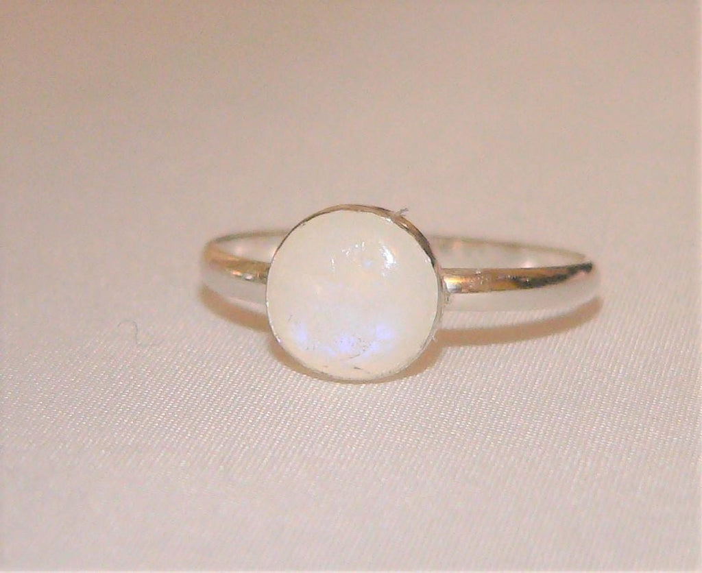 Blue Flash Rainbow Moonstone Stack Ring 8MM Sterling Silver, Boho Chic Jewelry, Handmade Gemstone Ring, Adjustable Sizes 5-9