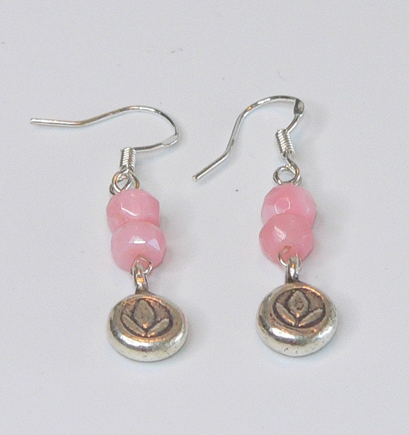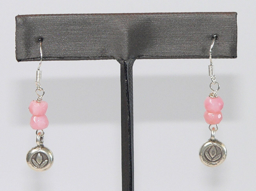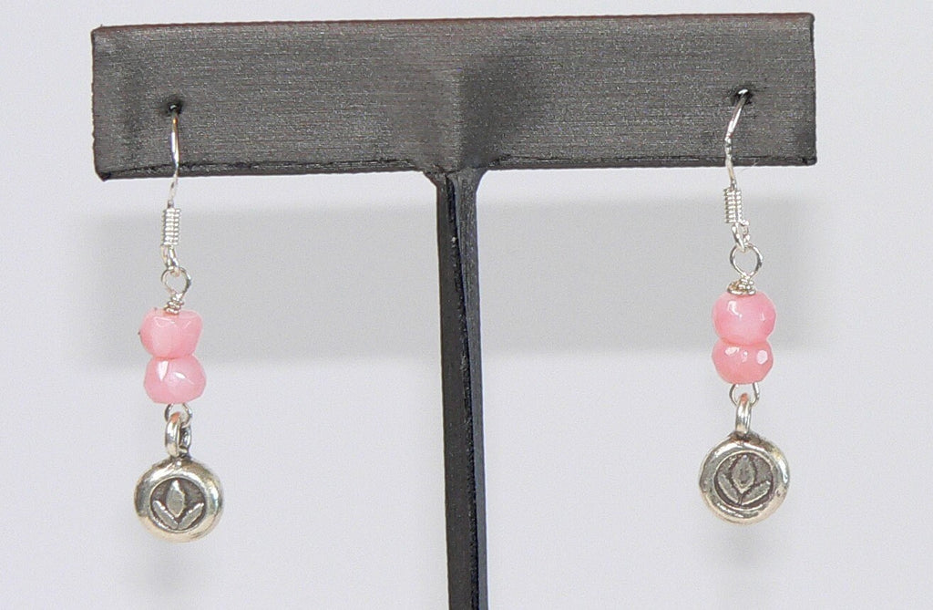 Beautiful Silver Lotus Charm Pink Peruvian Opal Earrings