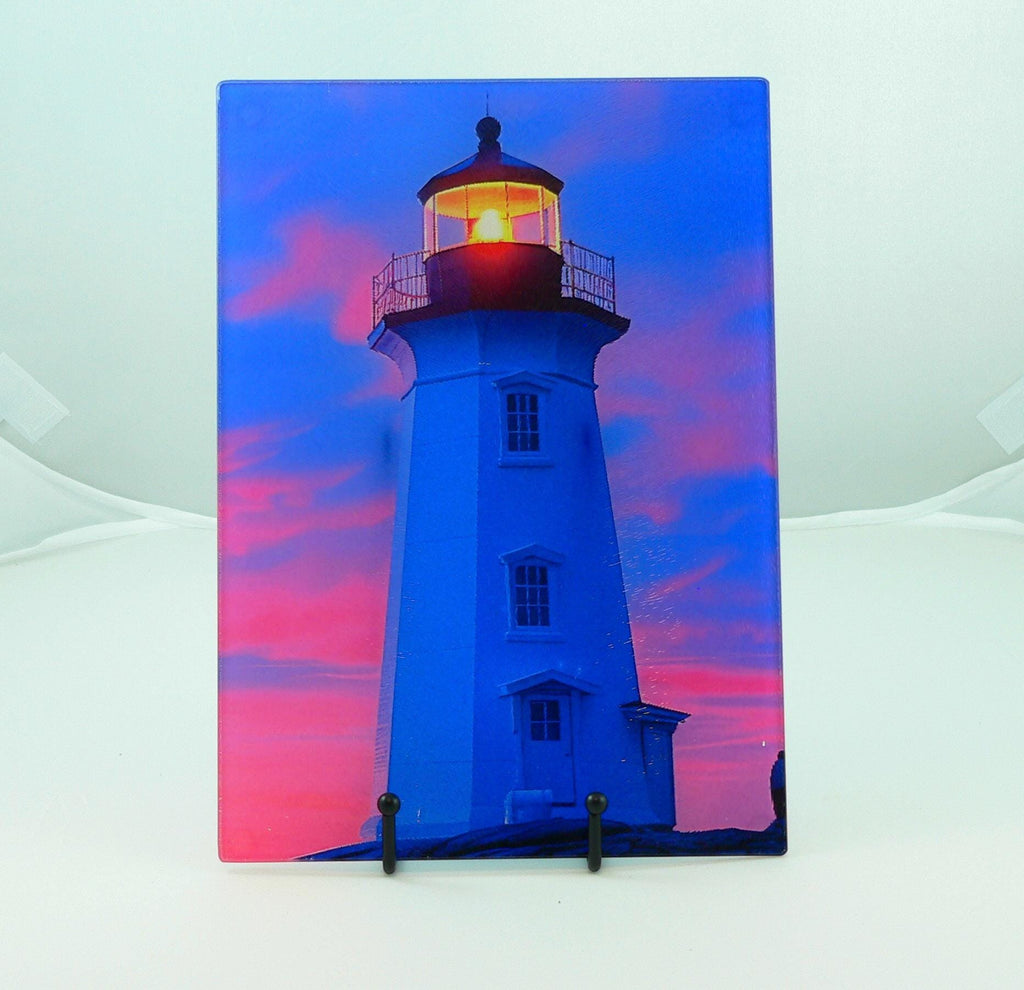 Coastal Lighthouse Glass Cutting Board: Art Deco Sunset Serving Tray for Charcuterie and Kitchen Decor