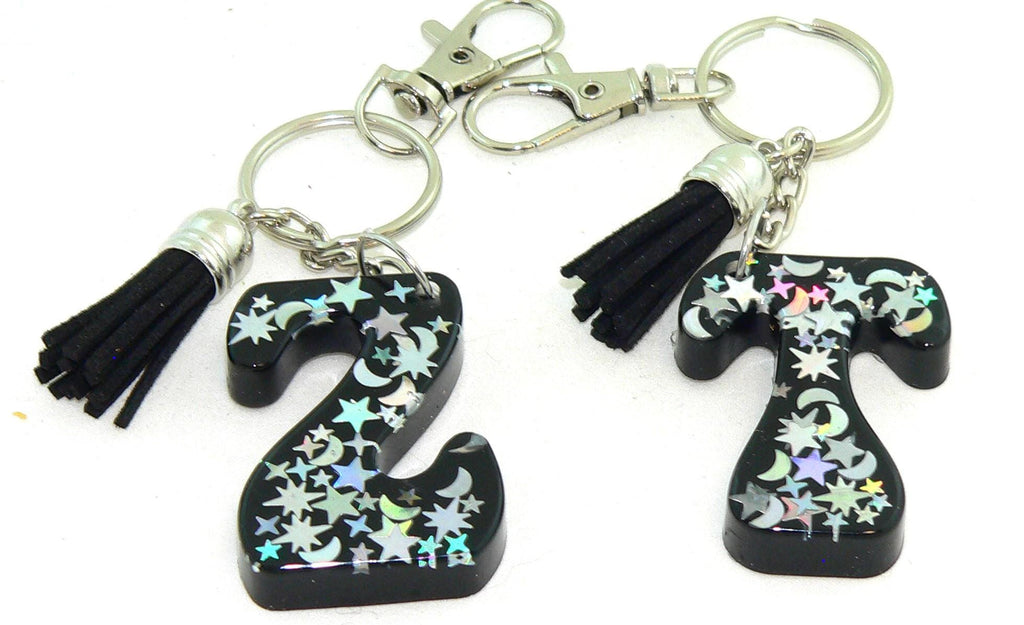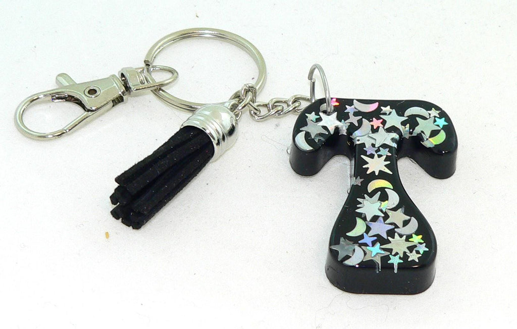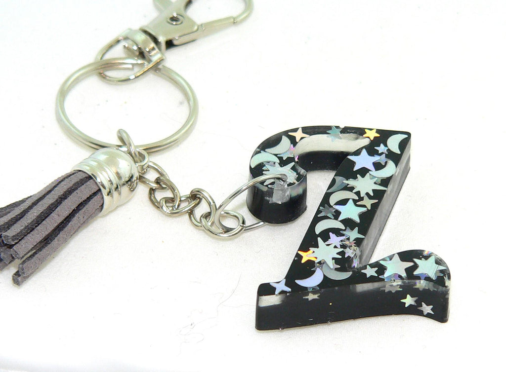 Custom Resin Initial Moon Stars Holographic Confetti KeyChain Purse Charm Backpack Charm