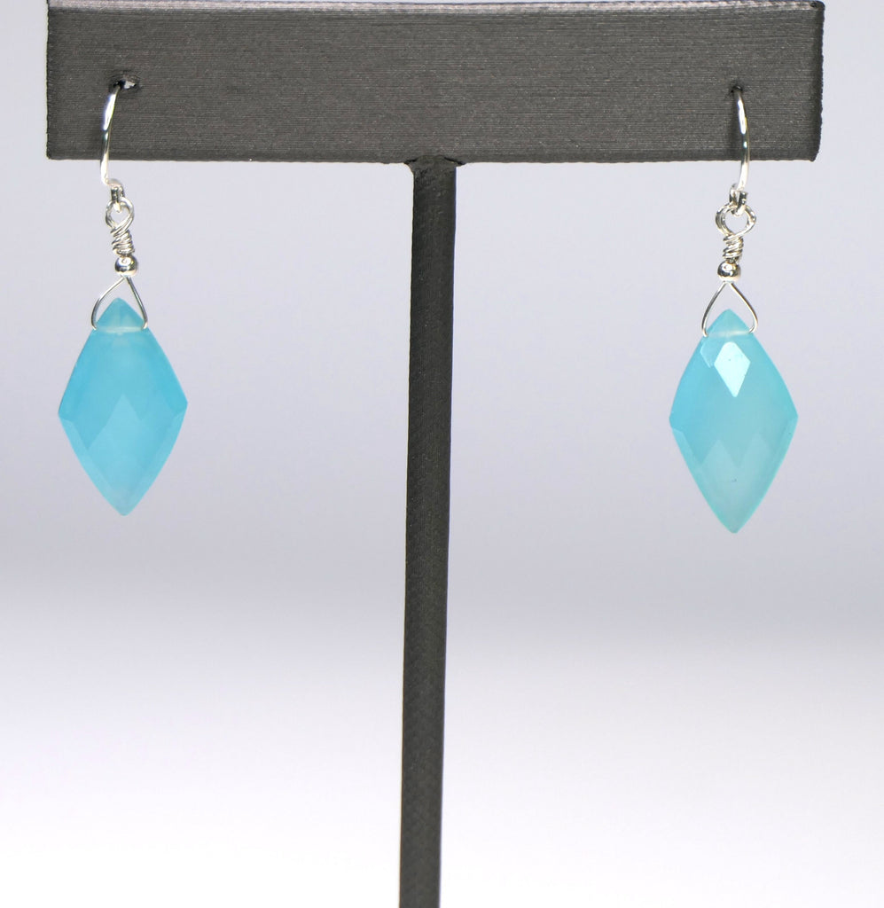 Diamond Shaped Aqua Chalcedony Briolette Earrings