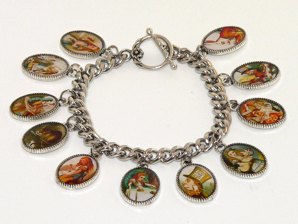 Enchanting Alice in Wonderland Charm Bracelet: Whimsical Jewelry Gift for Fans & Tea Party Enthusiasts