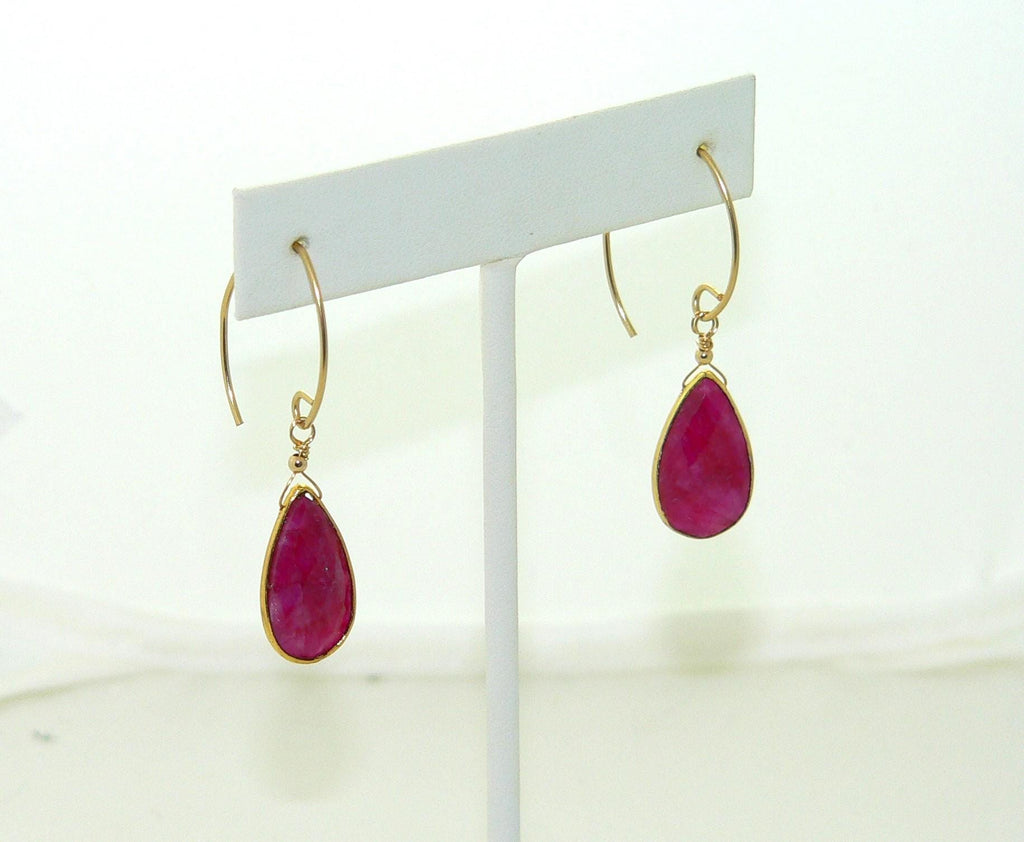 These genuine ruby briolette earrings are perfect for an anniversary or birthday present. Our elegant boho style jewelry is handcrafted using high quality materials. There are many unique and trendy, gift ideas for her. This fashionable. feminine, statement, accessory, is perfect for everyday wear or evening wear.
