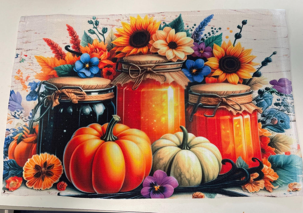 Handcrafted Autumn Harvest Placemats: Rustic Farmhouse Decor for Halloween & Fall Dining Tables Mason Jar Placemats