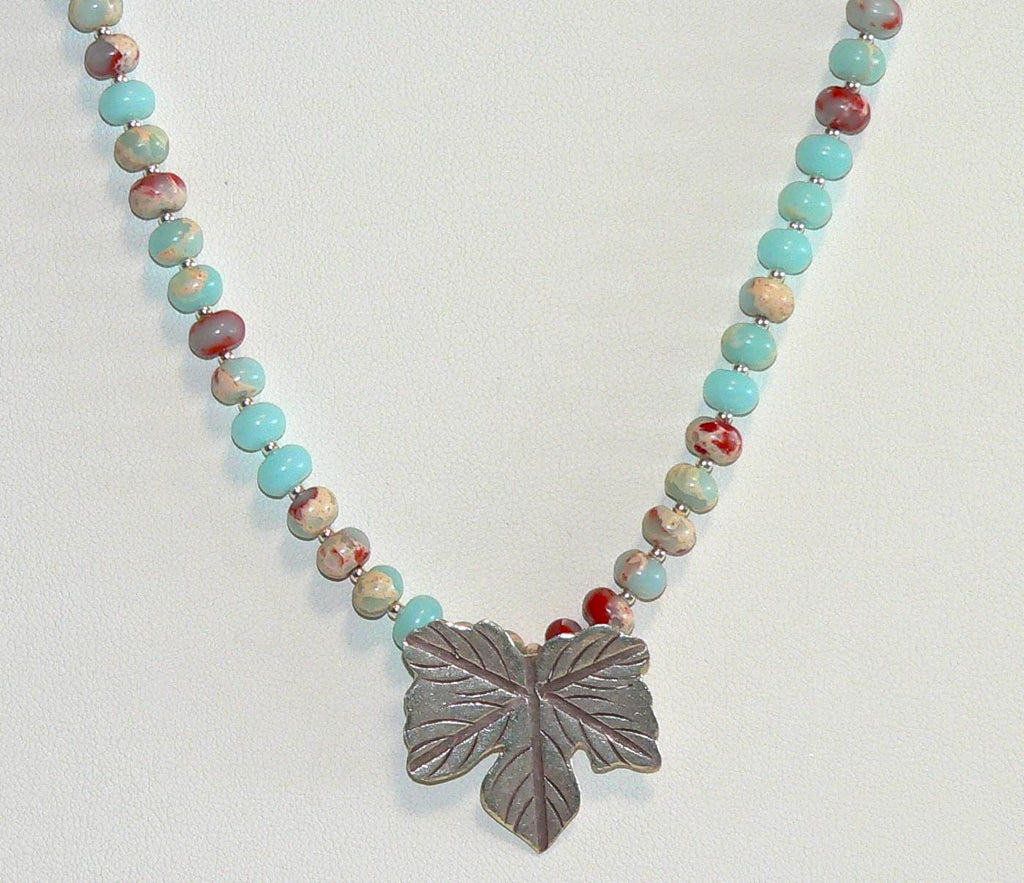 Embrace the vibrant essence of fall with our stunning Impression Jasper Bracelet, a handcrafted treasure adorned with an exquisite Thai silver leaf toggle clasp and detailing that captures the spirit of the season. Each unique gemstone glimmers with warm hues, inviting you to elevate your autumn wardrobe—don’t miss the chance to wear this one-of-a-kind accessory that sparks joy and makes every outfit pop; grab yours today! Bracelet measures 8" long. Get the matching necklace and earrings to make this a set. Earrings and necklace listed separately.