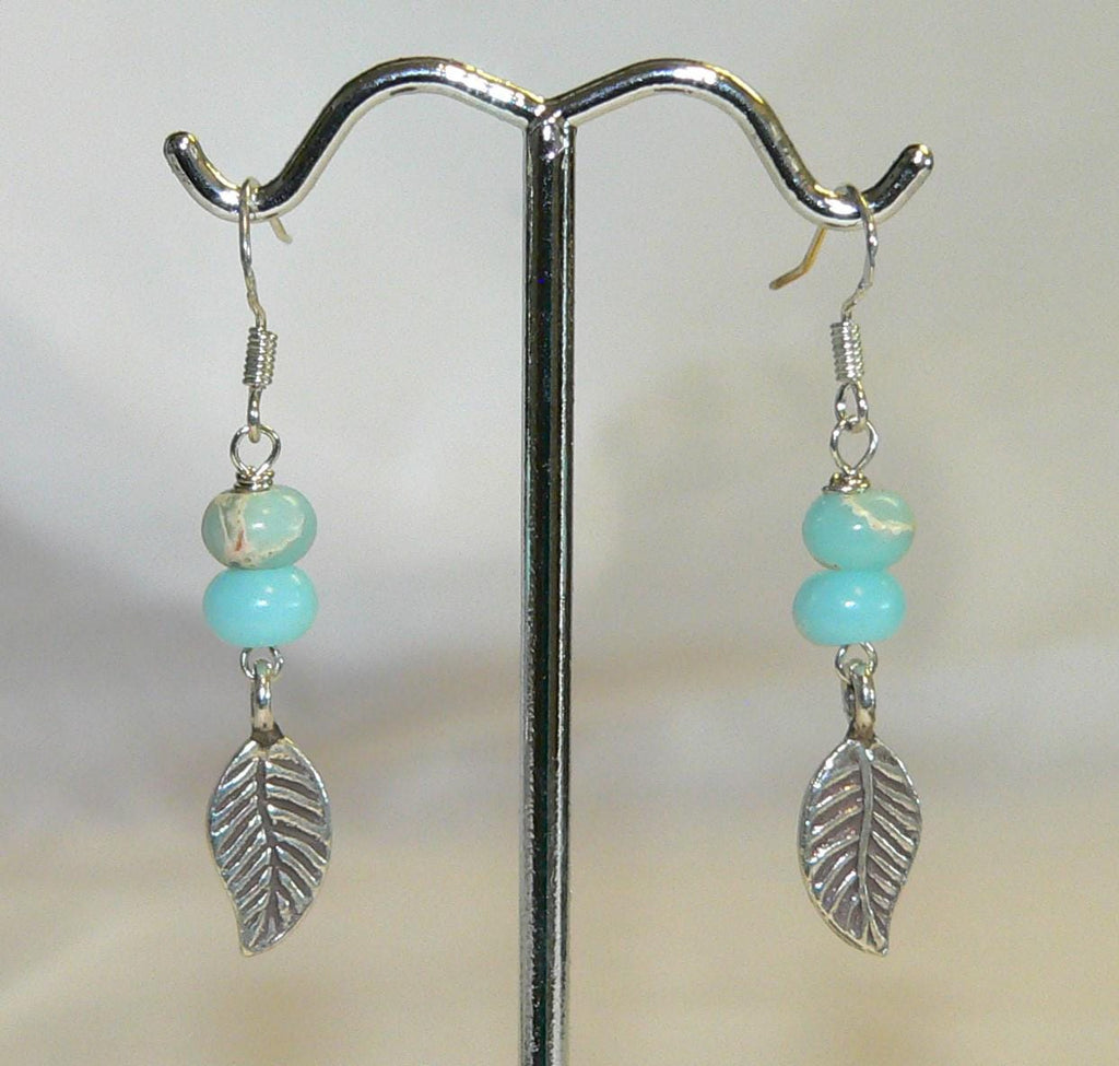 Embrace the beauty of autumn with these stunning Impression Jasper leaf earrings, featuring delicate Thai silver leaf charms and sterling silver ear wires that capture the essence of the season. Perfect as a heartfelt gift or a personal treat, these boho chic accessories will add an earthy elegance to your Thanksgiving celebrations—grab yours today and celebrate nature's artistry! These hang about 1.75" from the top of the ear wires