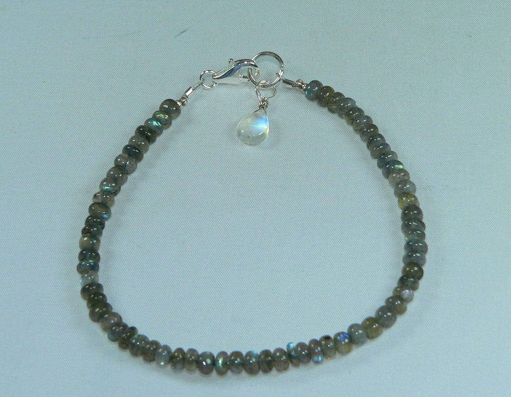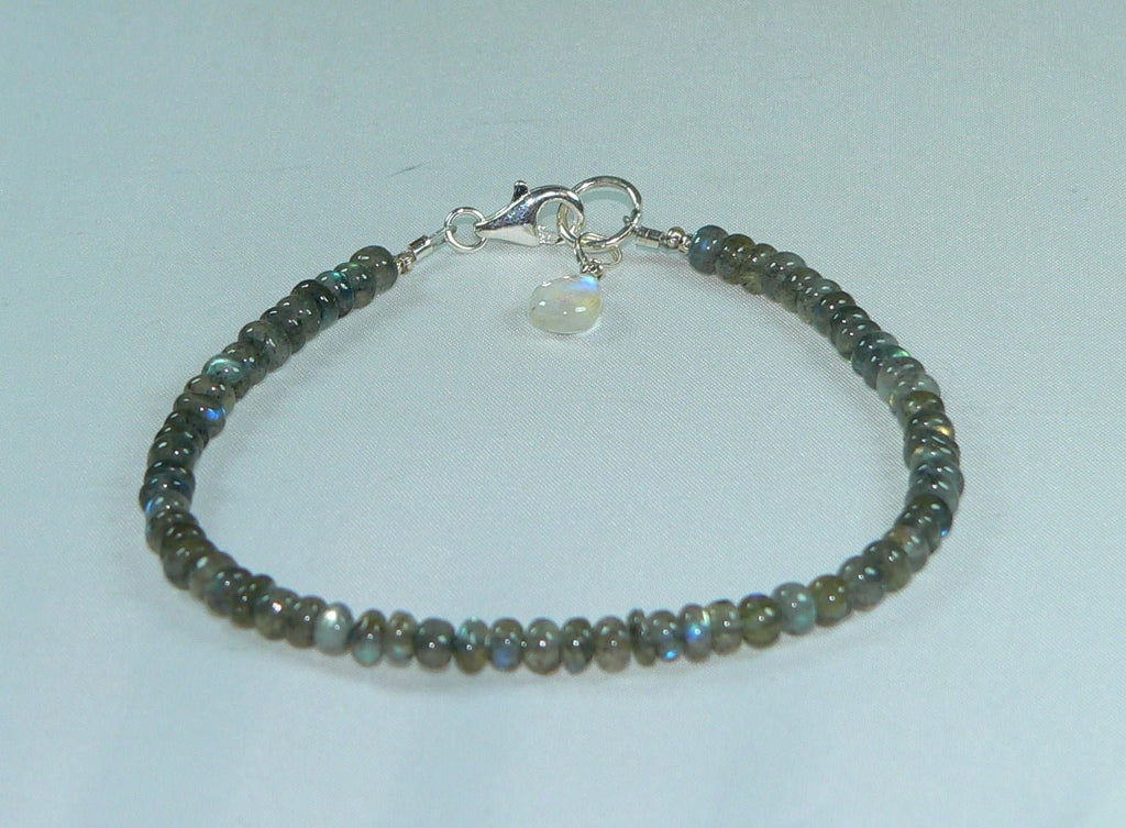 Labradorite Rondelle Healing Bracelet with Grey Stone and Boho Style Blue Flash Labradorite Bracelet