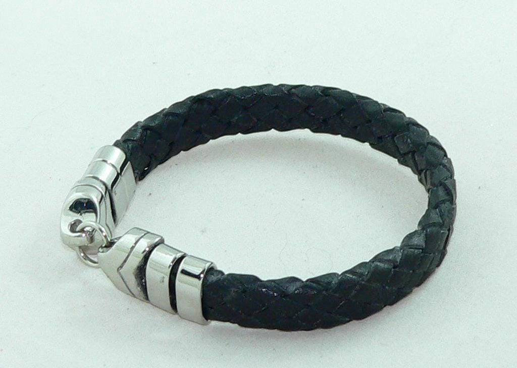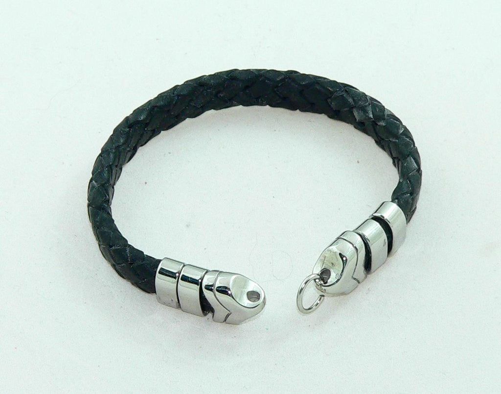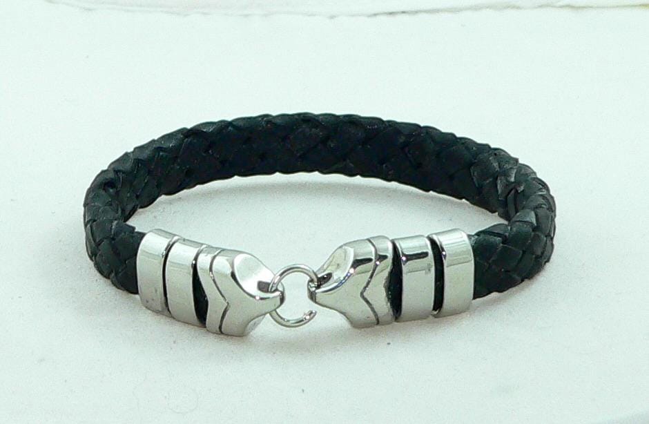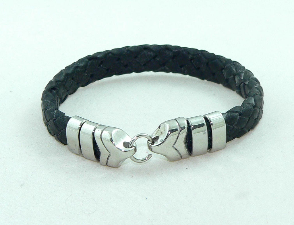 Men's BraidedBlack Leather Bracelet with Stainless Steel Clasp, Handmade, Masculine Gift, Boho Jewelry