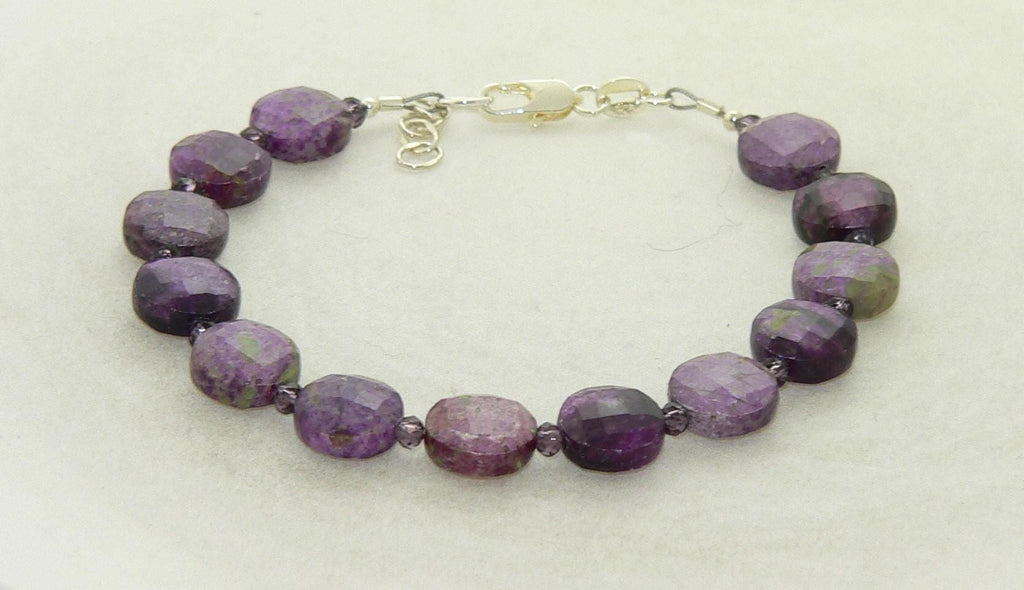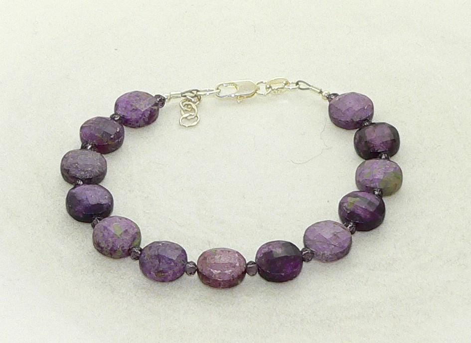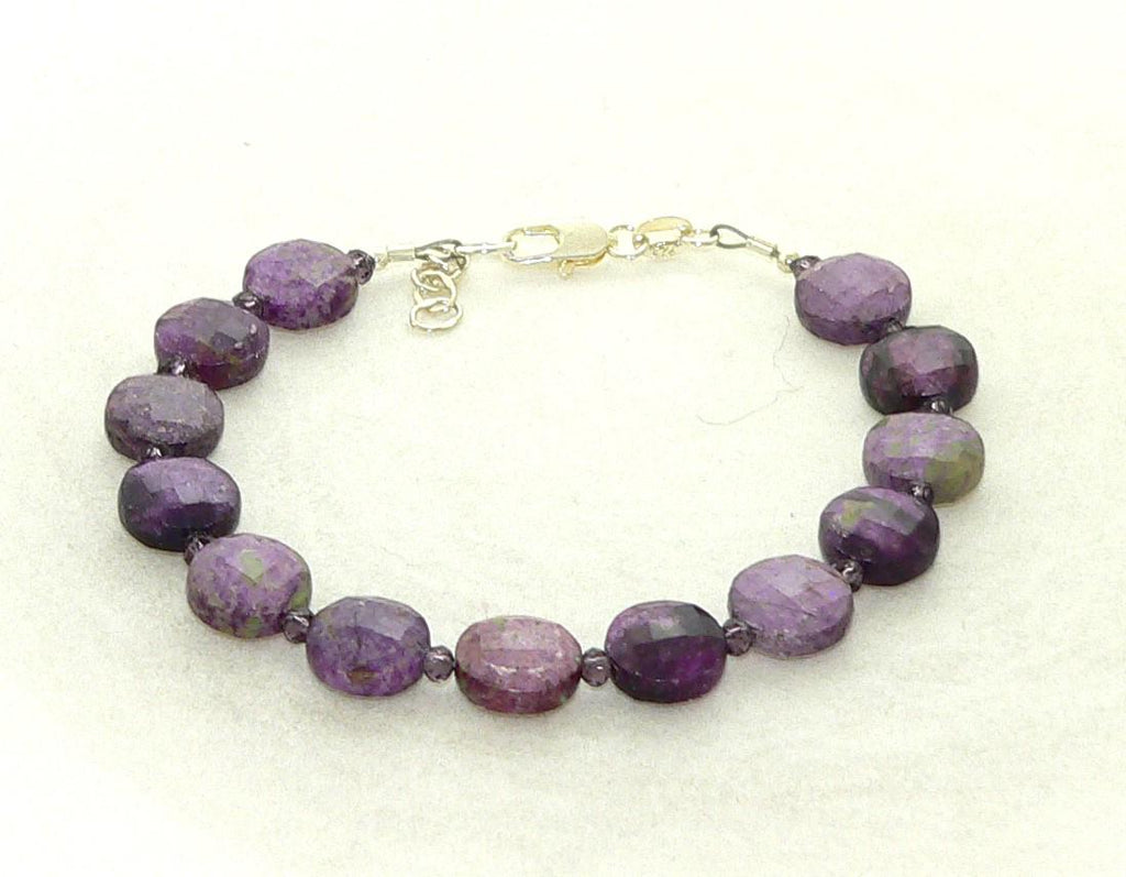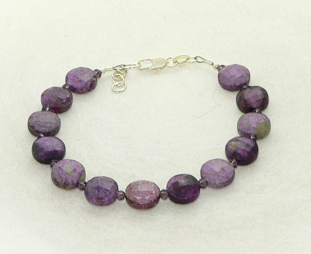Natural Sugilite Coin Bracelet: Healing Gemstone Stretch Wristband for Spiritual Jewelry Lovers