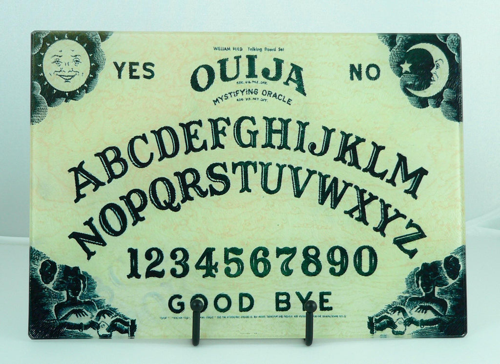 Ouija Board Tempered Glass Cutting Board | Handmade Kitchen Decor, Halloween Serving Tray & Appetizer Platter Charcuterie. Gothic Tray