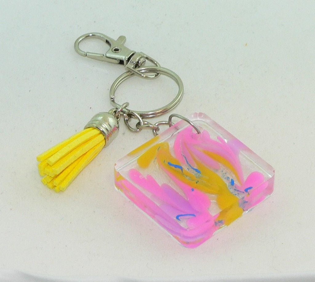 Pastel Pink Yellow Square Resin Keychain Purse Bag Clip