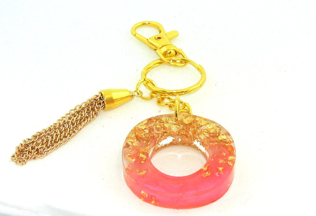 Personalized Pearlescent Pink Foil Keychain: Bag Charm for Purse or Backpack