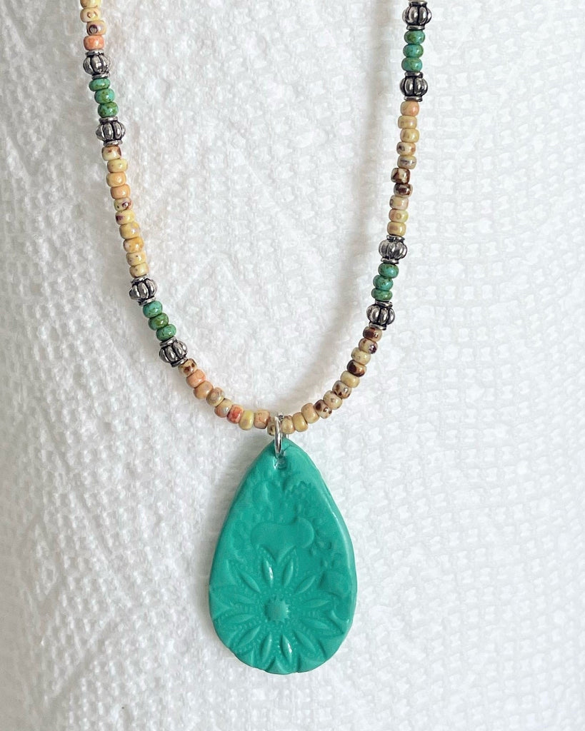 Southwestern-inspired polymer clay necklace is the ideal fall statement piece for your wardrobe