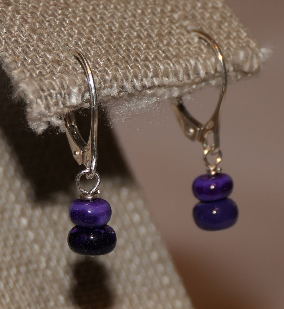 Handcrafted with smooth 4mm purple opal rondelle beads, these 6mm Purple Opal Earrings exude elegance and charm. Also known as Morado opal or opal royale, this exquisite stone, mined in Mexico, adds a touch of sophistication to any outfit. Quality sterling silver lever-back ear wires, these hang approximately 1" for a personalized touch.
