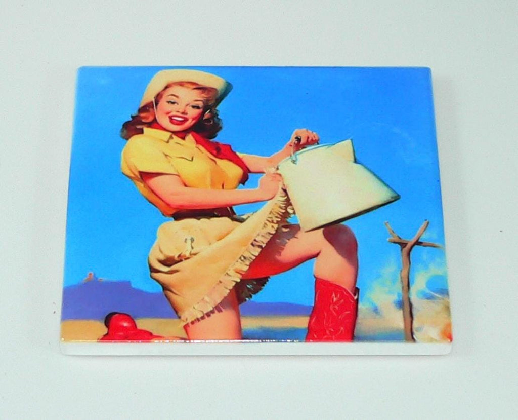 Bring a lively, vintage vibe to your home or man cave with these eye-catching cowgirl pinup coasters. They’re a functional, artistic, and conversation-starting addition to any space that appreciates retro decor and playful charm!