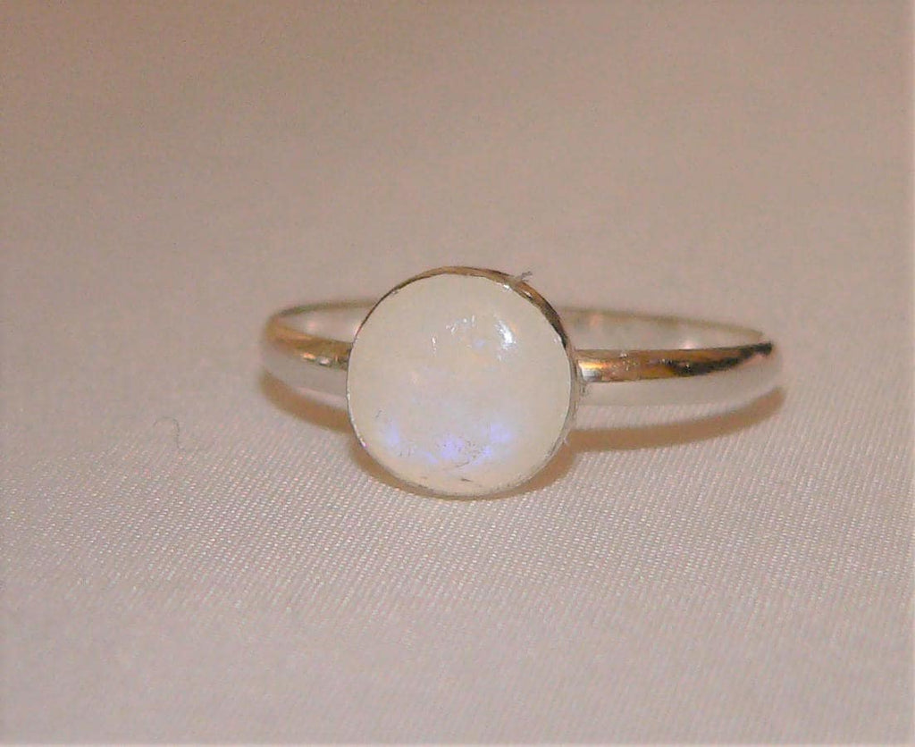 Sterling Silver Moonstone Ring 8mm Blue Flash Rainbow Gemstone Handmade Adjustable Gift Jewelry