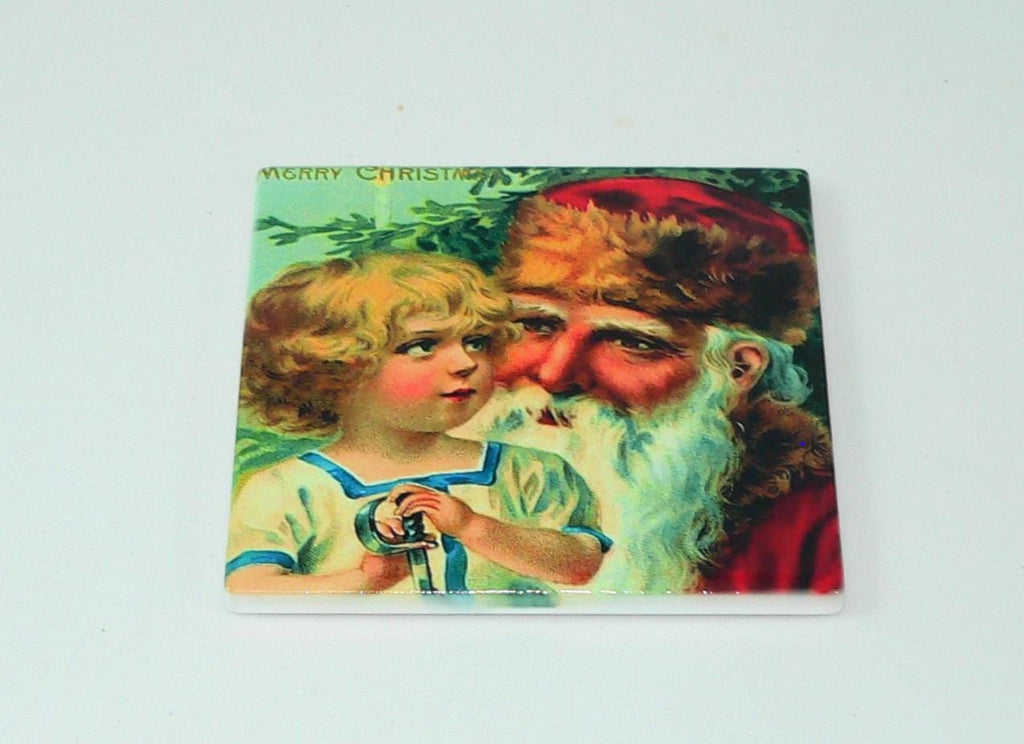 Vintage Christmas Postcard Coasters: Retro Holiday Decor, Shatterproof Surface Protection, Farmhouse Gift