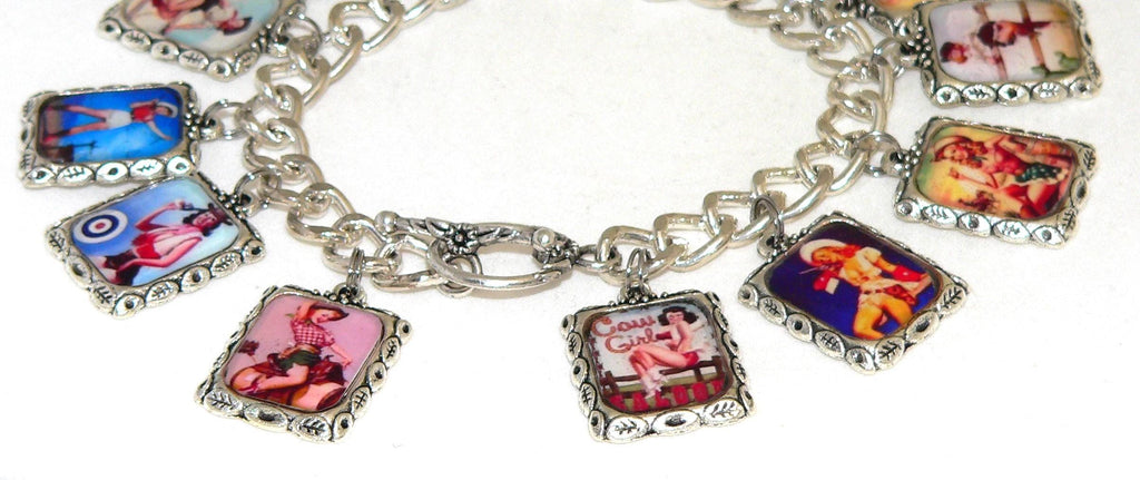 Vintage-Inspired Cowgirl Pin-Up Charm Bracelet - Unique Western Jewelry Gift for Sassy Ladies