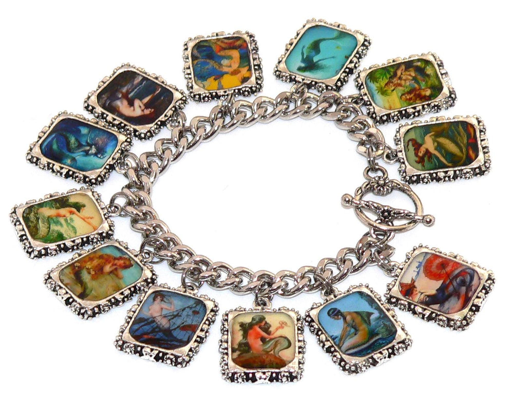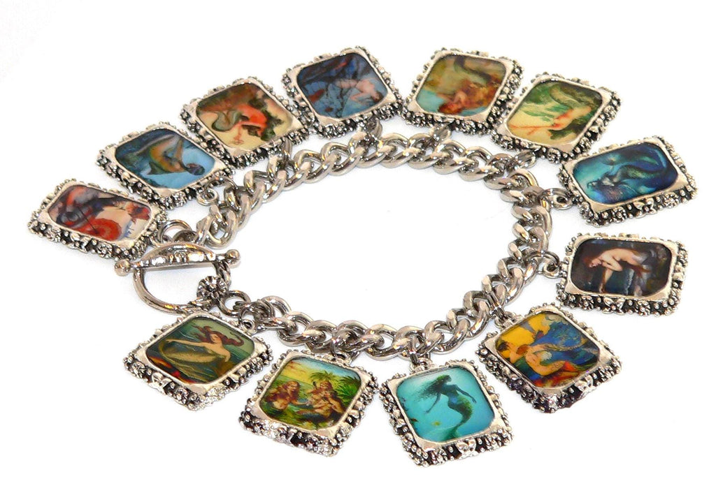 Vintage Mermaid Charm Bracelet with Artisan Deco Art Mermaid Altered Art Bracelet Mermaid Gifts For Her