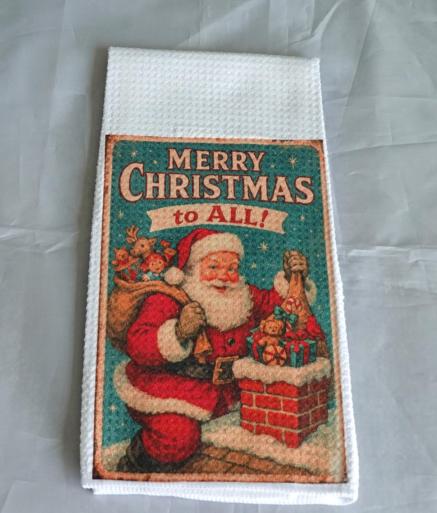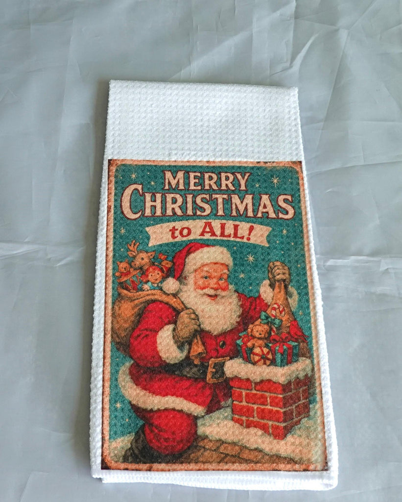 Vintage Santa Claus Christmas Kitchen Towel | Handmade Waffle Weave Holiday Decor, Reusable Gift, Nostalgic Vintage Christmas Kitchen Towel