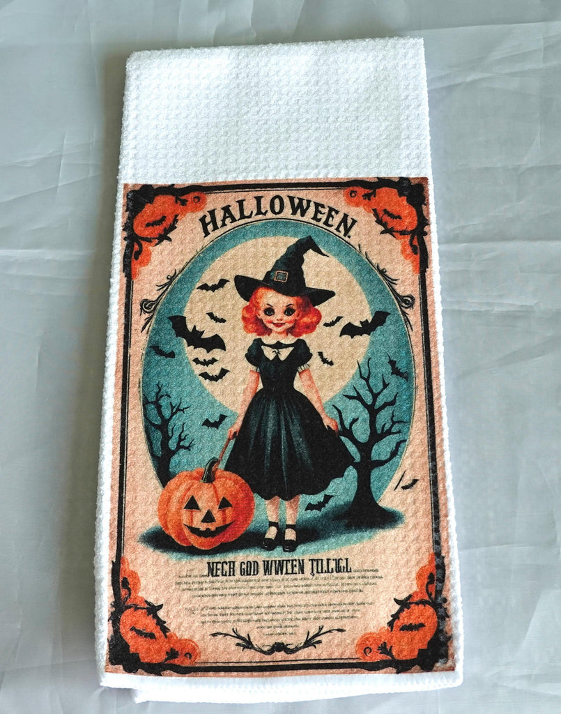 Vintage Witch Jack O Lantern Halloween Kitchen Towel | Gothic Absorbent Fabric Decor | Fall Home Decor | Halloween Gift | PumpkinTowel
