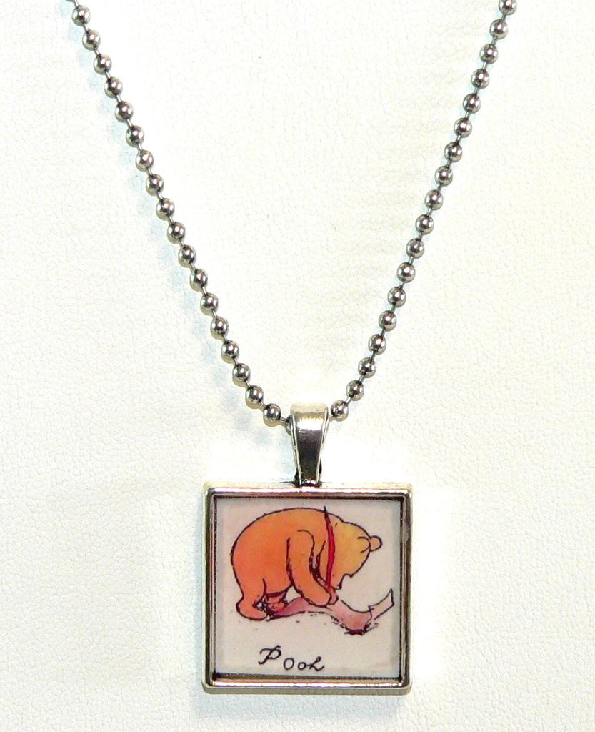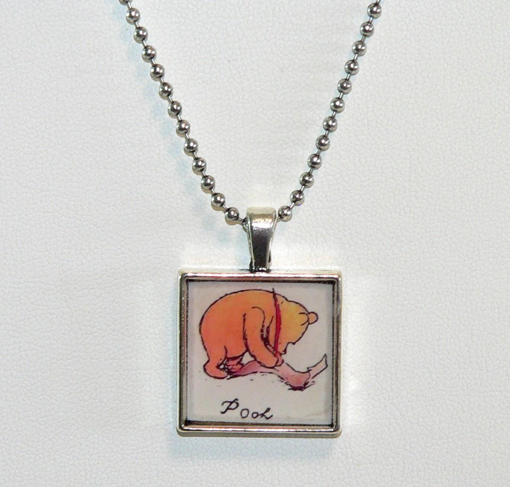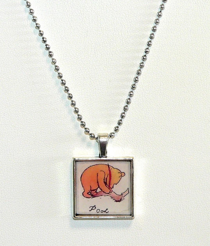 Winnie The Pooh Necklace Pooh Altered Art Pendant | Unique Gift for Disney Fans & Collectors | Handmade Jewelry