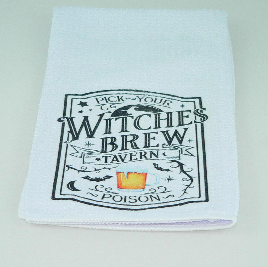Witches Brew Halloween Kitchen Towel: Durable Goth Decor, Absorbent Fabric, Housewarming Gift
